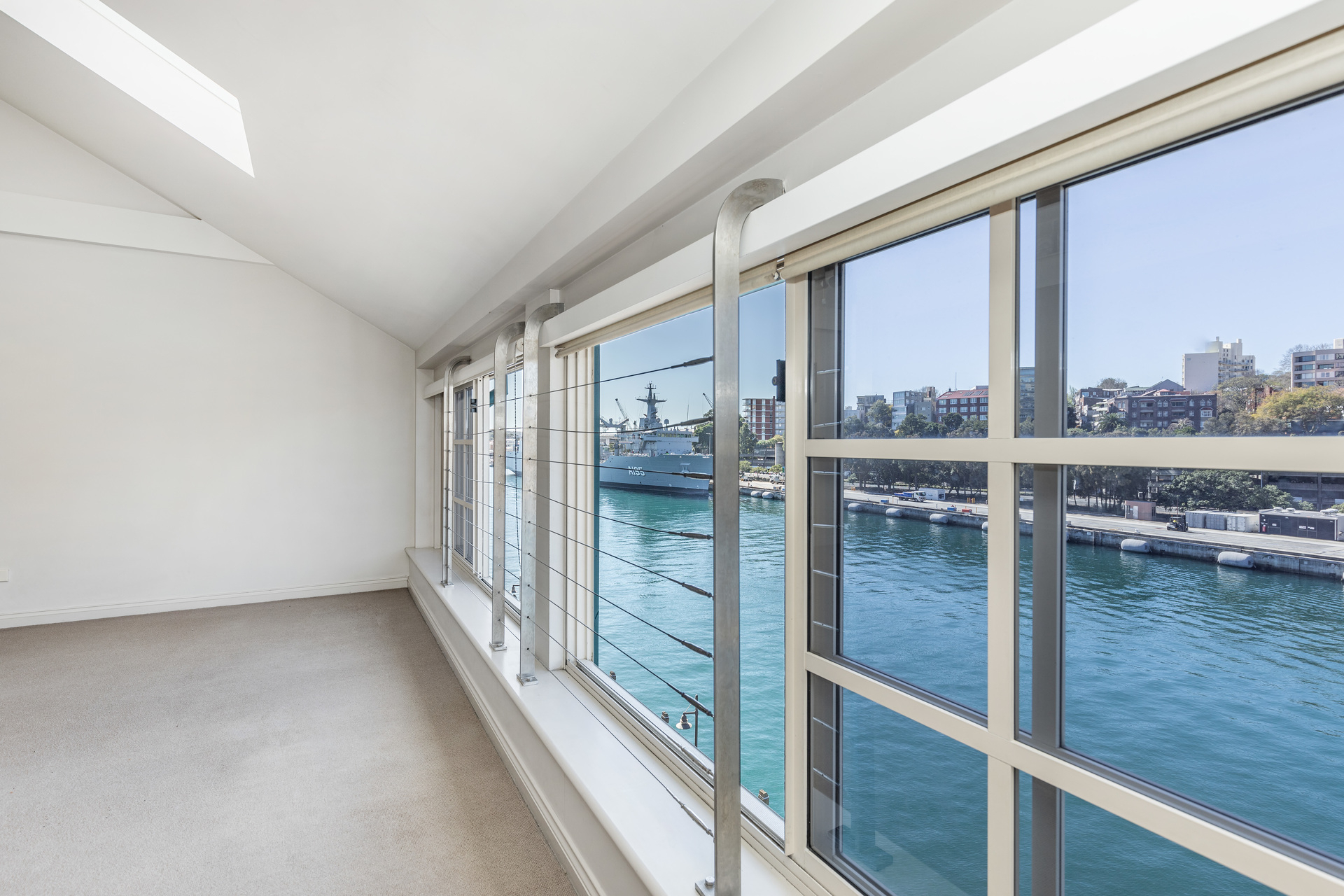 Top floor in the Finger Wharf Overlooking the bay towards Potts Point and Garden Island, this stylish loft has towering ceilings and is flooded with natural light. A rare find in Sydney's most prestigious harbourside enclave. A blank canvas for personal improvements